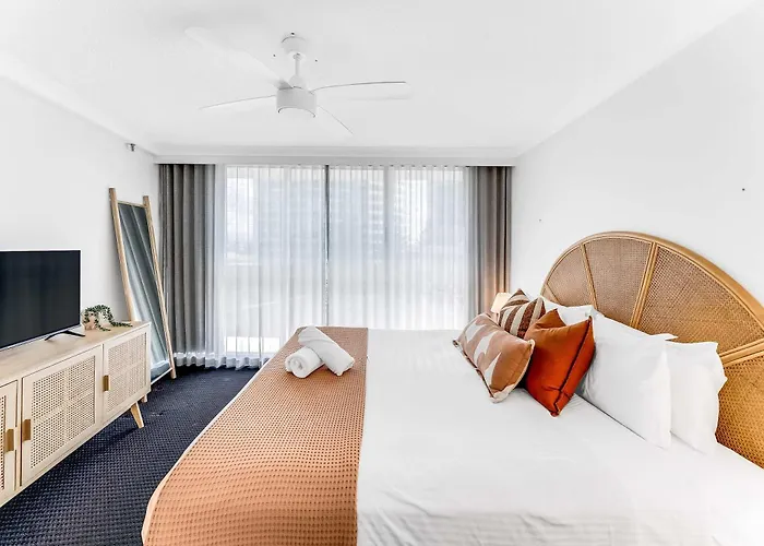 Located right in the centre of Gold Coast, the 100 m² Tiki By Khove Apartment Gold Coast offers fast access to the Sling Shot & Vomatron Amusement Rides Gold Coast about 15 minutes' walk away. This 2-bedroom apartment provides a swimming pool as well as a spa centre and a patio 500 metres from St Vincent's Catholic Church.